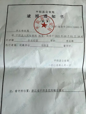 2025年6月26日,当其在浙江省衢州市柯城区人民医院才做了痔疮和肛围囊肿两个手术,伤口正在愈合之时,突然被温州市平阳县警方从病床上野蛮带走,并迅速以涉嫌“非法经营罪”刑拘;