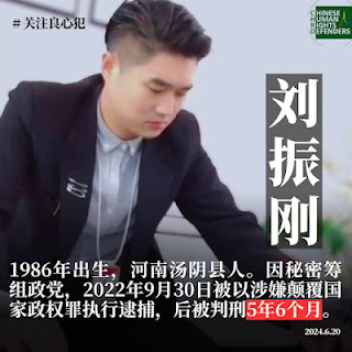 刘振刚:1987年9月9日出生,河南省汤阴县菜园镇人,江苏省苏州市吴江区长安路星宝花园常住公民,网名“南宫道人”、“刘子德”,中国民主胜利党(属秘密组党)重要成员,“泸州2022大抓捕案”受害者,中国在押政治犯。