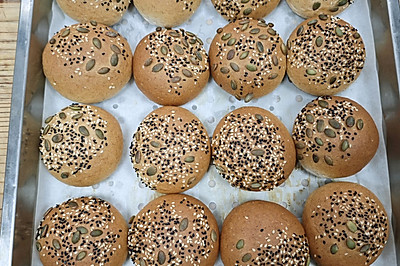 分成30克左右的剂子,揉圆,上面沾上南瓜子和芝麻