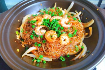 开盖撒上葱花,搅拌均匀就可以开动啦不是很辣,小孩子也可以轻松驾驭干锅粉丝虾的烹饪技巧