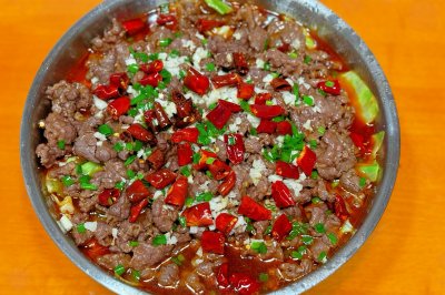 撒上蒜末、干辣椒、葱花,淋上热油就可以开吃啦水煮牛肉的烹饪技巧