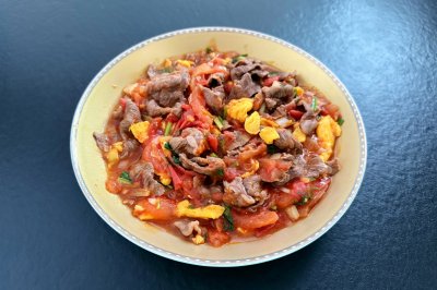 3:煎出来的油直接放入葱末爆香,放入番茄按压炒出沙,调味加盐、白糖、鸡精、酱油,然后放入炒好的鸡蛋、肥牛,稍微煮两分钟入味,放入葱花、香菜出锅即可!