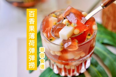 百香果对半切块,将果肉挖出倒入锅中,依次加入薄荷粉与白凉粉