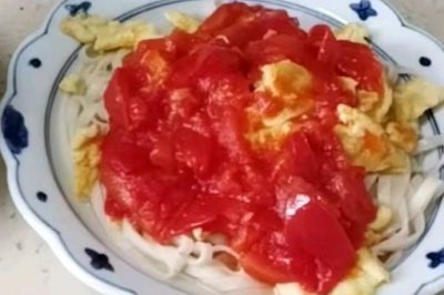 将鸡蛋和番茄倒在冷面上即可番茄鸡蛋卤面的烹饪技巧