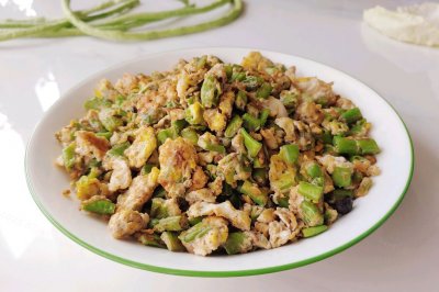 开火热锅加点油先扔提前掐头去尾洗干净切碎的长豆角