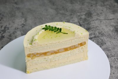 5.慕斯冷冻凝固后脱模,用青柠果冻和慕斯进行装饰即可。雪莲果青柠蛋糕的烹饪技巧