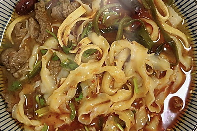 分享 Facebook Twitter LinkedIn Pinterest 邮件 牛肉烩面的用料 牛肉 200克 扯面 200克 海带丝 豆皮 香菜 牛肉烩面的做法 步骤1 牛肉切片,放入生抽、胡椒粉、淀粉、食用油拌匀后腌制20分钟; 热锅凉油,爆香花椒粉,放入牛肉翻炒至变色; 步骤2 放入蒜末、辣椒面、老抽炒出香味; 步骤3 加入热水烧开,放入面条,调入生抽、尖椒、胡椒粉、盐; 步骤4 放入海带丝、豆皮,将面条煮熟; 步骤5 撒上自己喜欢的葱花或香菜即可~ 步骤6 开吃吧~ 牛肉烩面的烹饪技巧 烹无定法,适口者珍,大家可以根据个人口味适当调整调料的用量。
