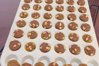 装入裱花袋中,准备好烤盘放上纸托。我用的48连模小蛋糕模具。