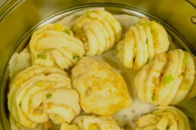 冷水上锅,大火烧开后转中小火蒸12分钟,关火后焖3分钟,出锅。葱香花卷的烹饪技巧