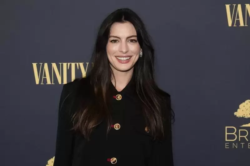 安海瑟薇在拍摄“穿著Prada的恶魔2”时在街头跌倒。(美联社)