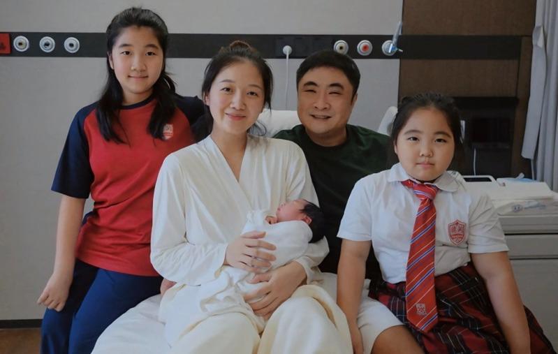 乔杉(右)与莫丹第三胎儿子出生。(取材自微博)