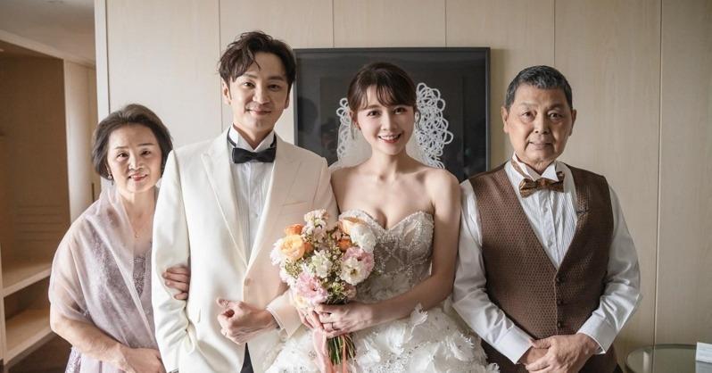 男团Energy成员书伟父亲上月病逝,2日举办了父亲告别式,Energy其他四位团员阿弟、Toro、牛奶、坤达都前往表达慰问之意,并在脸书发文表达对于父亲的不舍。图为书伟(左二)2023年底结婚时全家福合照。(取自张书伟脸书)