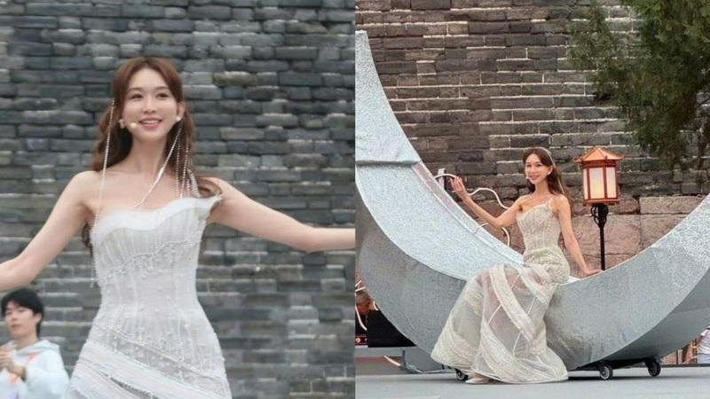 中国十一连假适逢中秋节,万里长城涌入大批游客时,「台湾第一名模」林志玲惊喜现身居庸关景区进行彩排,现场掀起一阵骚动。她一袭白色平口礼服在古老城墙间婉约起舞,时而轻唱、时而与男舞者对戏,甚至抱着乌克丽丽坐上巨型弦月高空演出,犹如仙子降临。游客直呼:「那一刻,她真的像从月亮走下来的女神」。