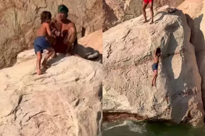 视频可见,迦勒特不停帮卡拉汉打气,鼓励他打破恐惧一跃而下,见卡拉汉仍在犹豫,迦勒特下秒将他抱起,直接丢到湖里,视频曝光后瞬间爆红,不过也引来大量批评,认为迦勒特应该更注重儿子的安全,而非一味的只想挑战极限。