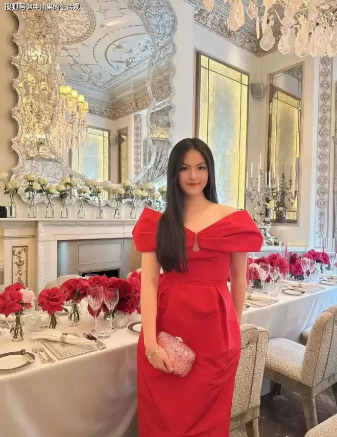 看得出来王诗龄很喜欢,她穿着大红色的礼服,戴着贵重的珠宝首饰,化着精致的妆容,踩着玫瑰花的高跟鞋,穿搭像童话里的在逃公主,贵气十足。