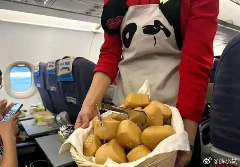 川航客舱发馒头、花卷,被南韩网友质疑不卫生。(取材自微博)