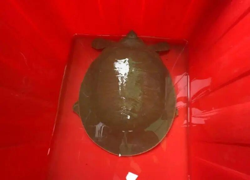 据广州日报报导,9月16日晚,广东潮州市渔民在韩江市区段收网时,发现网中有一只形似「大甲鱼」的生物,与潮州市海综支队微信公众号所宣传的韩江鼋非常相似。渔民立即将该生物解救上船,用大水桶进行养护,并迅速联系潮州市海综支队,并请来韩山师范学院生物科学院及南海科学院珠江水产研究所的专家到场协助鉴定。