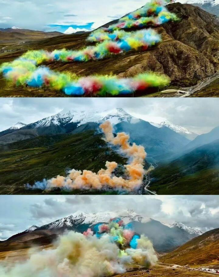 另外,一则「始祖鸟上个月就做了炸山测试」昨天登上热搜榜,一张疑似「升龙」烟花秀8月份彩排的图片广为流传,图中的烟花无论颜色还是形态,都与蔡国强「升龙」项目一致。上游新闻报导,该图片显示的拍摄地在邻近江孜县的浪卡子县。当地公安、环保、应急三部门回应,未收到过任何烟花燃放活动的报备,该县也从未进行过「升龙烟花彩排。
