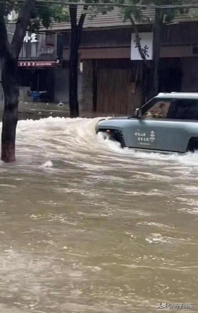 视频显示,上述车辆在行驶时激起水浪,有路人惊呼「海浪」,随后传来玻璃破碎、砸落水中的声音,有店铺卷闸门也被水冲至变形。有人上前拦截车主,指责其「在那摇来摇去三次了。」