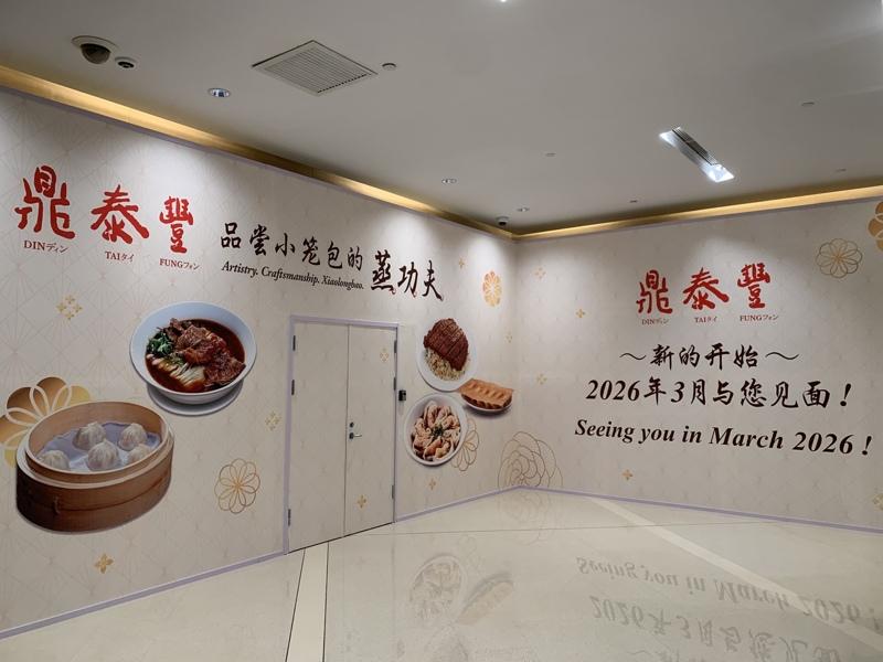 本报记者昨日实际前往位于北京国贸商圈的嘉里中心商场B1楼层,原先为湖南菜馆「辣屋」的门市位置,已开始重新装潢,外部包覆印有「鼎泰丰」品牌,有「鼎泰丰 品尝小笼包的蒸功夫」,和「2026年3月与您见面!」等字样的广告墙,还有小笼包、牛肉面、红油炒手、排骨蛋炒饭等招牌菜的图片。