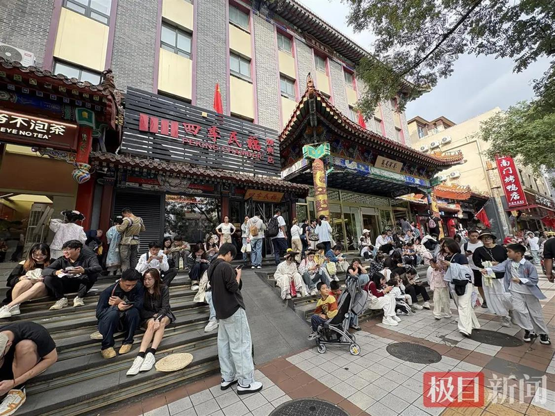 极目新闻报导,3日下午4时许,四季民福烤鸭故宫店店内座无虚席,排队区也坐满了等待就餐的游客,还有顾客正在线下排队取号。