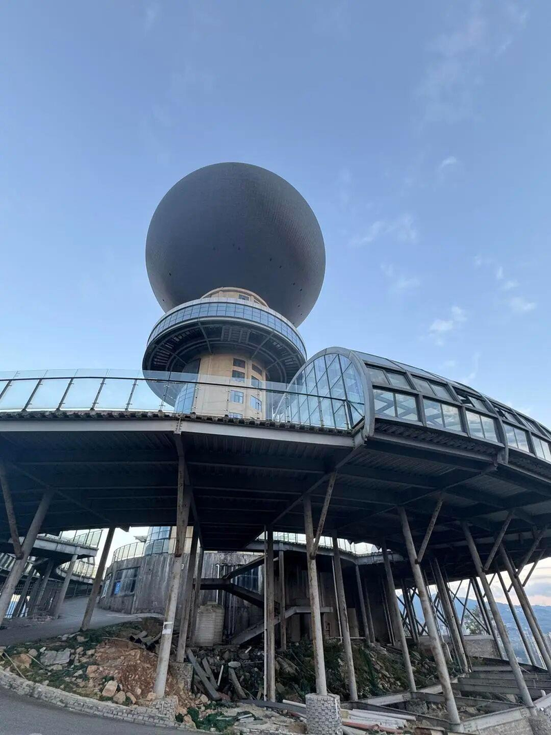 在贵州六盘水盘州市中央森林公园内的月亮山山顶,有一座高约100米、球体直径达40米、号称「全世界最大的人造月亮」,却在运营不足百日后便停运至今,据报导,此「人造月亮」截至今年8月建设工程总造价已超1.07亿元人民币(约1507万美元),因建设单位、国有控股的贵州宏财公司资金链断裂,加上存在消防质量、工程建造手续不足等问题被搁置,迄今已闲置五年,当地正推动盘活,但效果仍待观察。