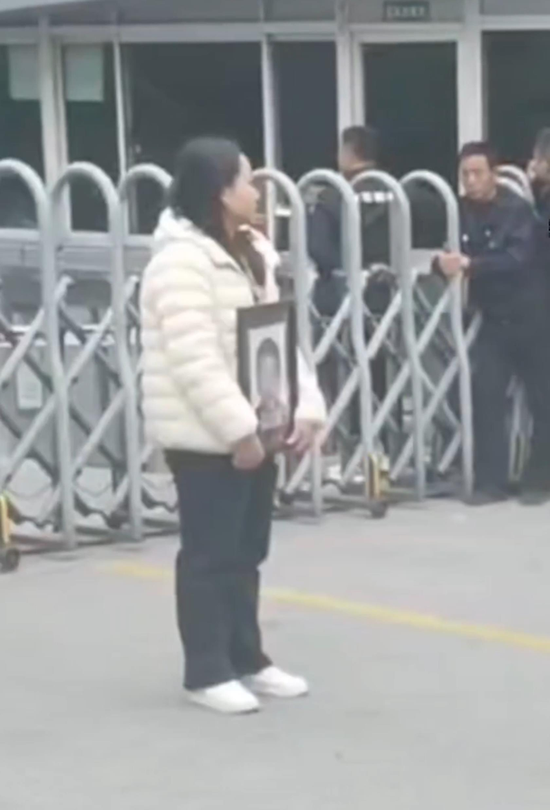 江苏一名快递员因送错快递被收件人丈夫捅死,家属抱遗像讨说法。(视频截屏)