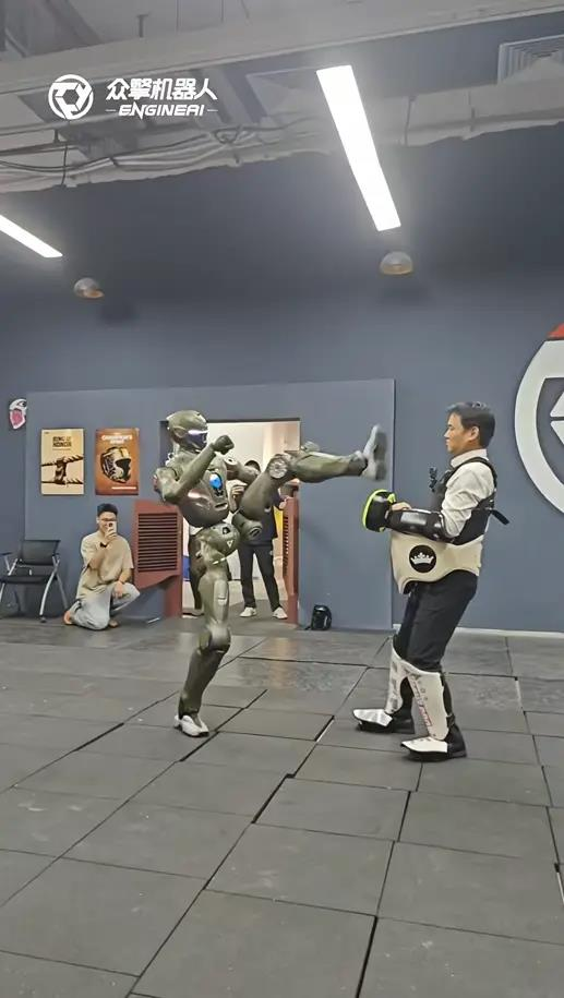 该公司分享视频中,赵同阳身穿护具,第一次成功躲过T800的飞脚,但险些被正面踹中,差点用脸接招。第二次就没那么幸运了,T800一脚直接踹在赵同阳腹部,将他踹翻在地,挨踹后的赵同阳直呼:「太暴力了、太残暴了,如果不戴护具没人能撑得住,绝对会骨折」。