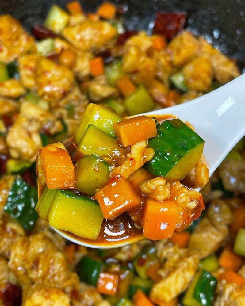 据悉,在川菜标准配方中,川宫保鸡丁仅含鸡丁、花生米、干辣椒段、花椒、葱段,内核味型为「糊辣荔枝口」,也就是酸甜微辣、焦香突出。黄瓜、胡萝卜因含水量高,会稀释酱汁浓稠度,掩盖干辣椒焦香,所以并不适合当配料。