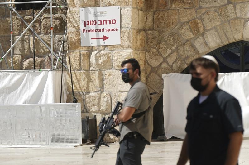 美国国务卿鲁比欧14日参观耶路撒冷哭墙时,安保人员在旁边站岗。 (美联社)