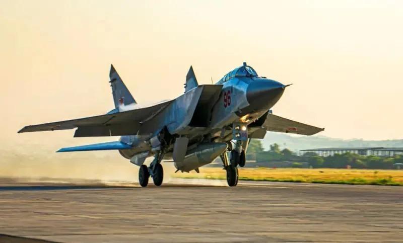 俄罗斯国防部媒体服务2022年8月发布影片显示,俄罗斯空军三架米格-31战机停在加里宁格勒州契卡洛夫斯基空军基地。(美联社)