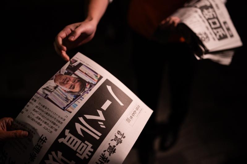 大阪大学特任教授坂口志文获得今年诺贝尔医学奖后,日本报纸在街头发号外新闻。(美联社)