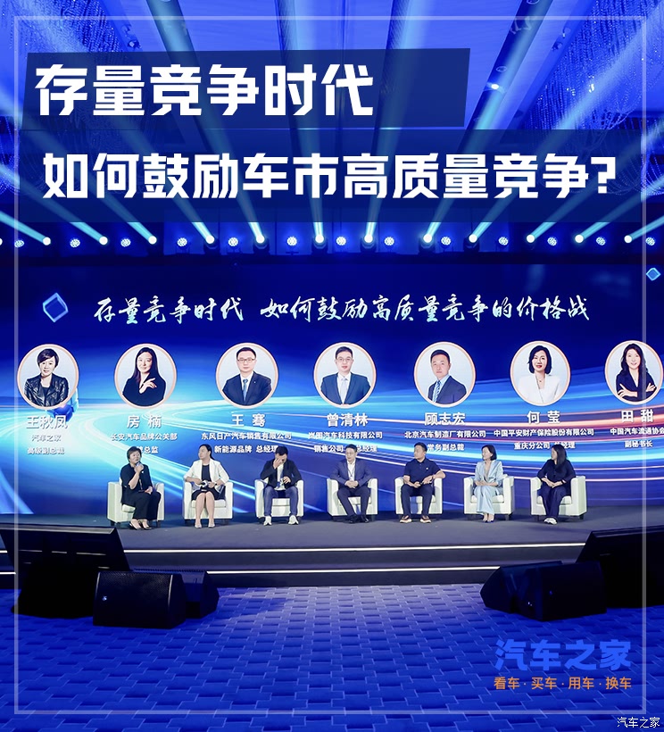 在6月5日的2025汽车之家重庆思享会上,汽车之家高级副总裁王秋凤就这一行业热点话题与长安汽车品牌公关部品牌总监房楠、东风日产汽车销售有限公司新能源品牌总经理王骞、岚图汽车销售服务有限公司副总经理曾清林、北京汽车制造厂(青岛)有限公司总经理顾志宏、中国平安财产保险股份有限公司重庆分公司总经理何莹、中国汽车流通协会副秘书长田甜等六位企业及行业大咖展开沙龙对话。这次沙龙对话的主题为“存量竞争时代,如何鼓励高质量竞争?”。