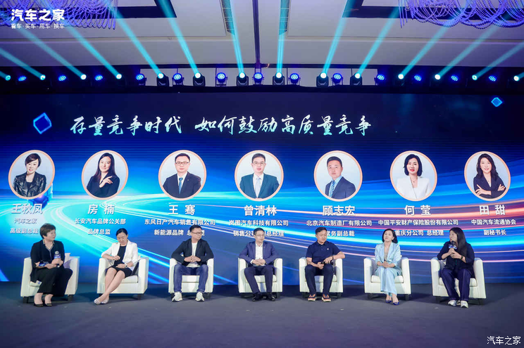 在本场思享会现场,汽车之家高级副总裁王秋凤主持了主题沙龙,与厂商代表共同探讨“存量竞争时代,如何鼓励高质量竞争”。长安汽车品牌公关部品牌总监房楠、东风日产汽车销售有限公司新能源品牌总经理王骞、北京汽车制造厂(青岛)有限公司总经理顾志宏、岚图汽车科技有限公司销售公司副总经理曾清林、中国平安财产保险股份有限公司重庆分公司总经理何莹、中国汽车流通协会副秘书长田甜展开了思想碰撞。本次主题沙龙话题涉及恶性竞争和良性竞争的区别、新时代该如何进行高质量竞争等。