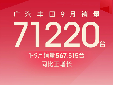 广汽丰田9月销量71220台 1-9月累计销量567515台
