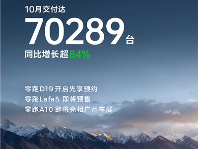 零跑汽车10月交付70289台 首次单月交付破7万台