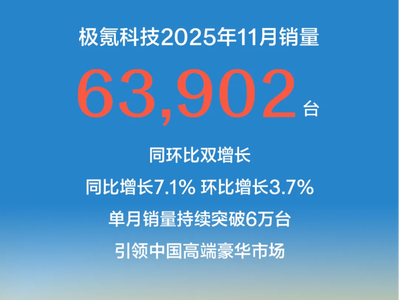 同比增长7.1% 极氪科技集团11月份销量为63902台
